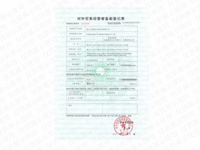 對外貿易經營者備案登記表